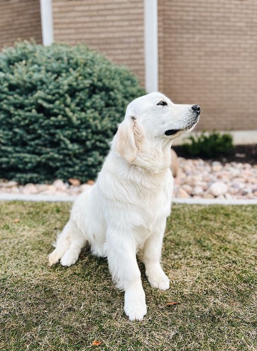 Dolly is an English Cream Golden Retriever. She is strong and has a beautiful conformation. She is a daddy's girl and loves to wrestle with the kids in her family.