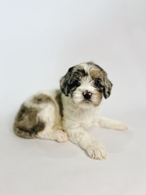 Mazie is an 8lbs F1B Cavapoo. She is athletic and loves her walk. She is filled with love and is fiercely loyal to her family, and has been an amazing, nurturing mother.